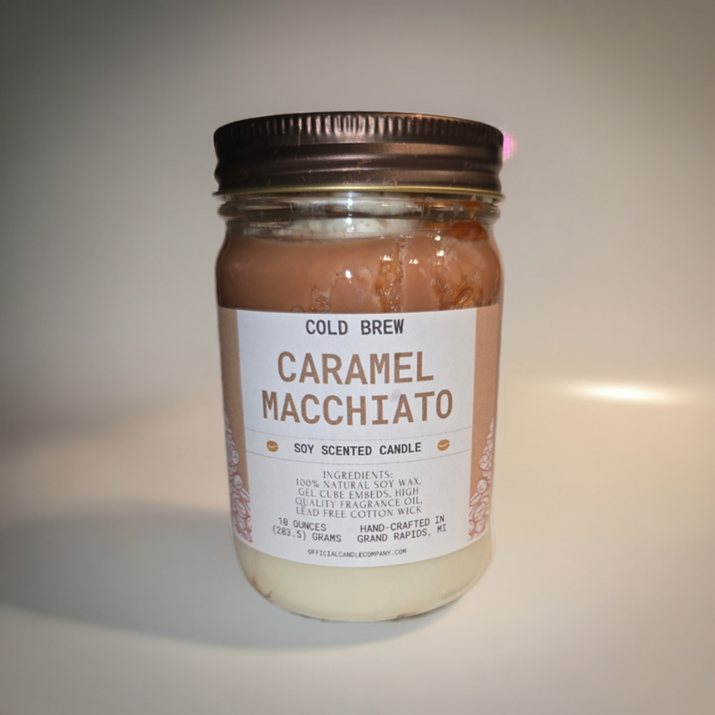 Indulge in the luxurious aroma of our Cold Brew Caramel Macchiato Candle, crafted to bring the sweet, comforting scent of your favorite coffeehouse drink into any space. This candle blends the bold richness of cold brew coffee with layers of creamy vanilla and a drizzle of golden caramel, evoking the warmth of a perfectly poured caramel macchiato. With each burn, enjoy the balanced notes of roasted coffee and smooth caramel sweetness, creating a cozy, welcoming ambiance. Hand-poured with natural wax for a long-lasting, clean burn, this candle is perfect for coffee lovers and caramel fans alike.