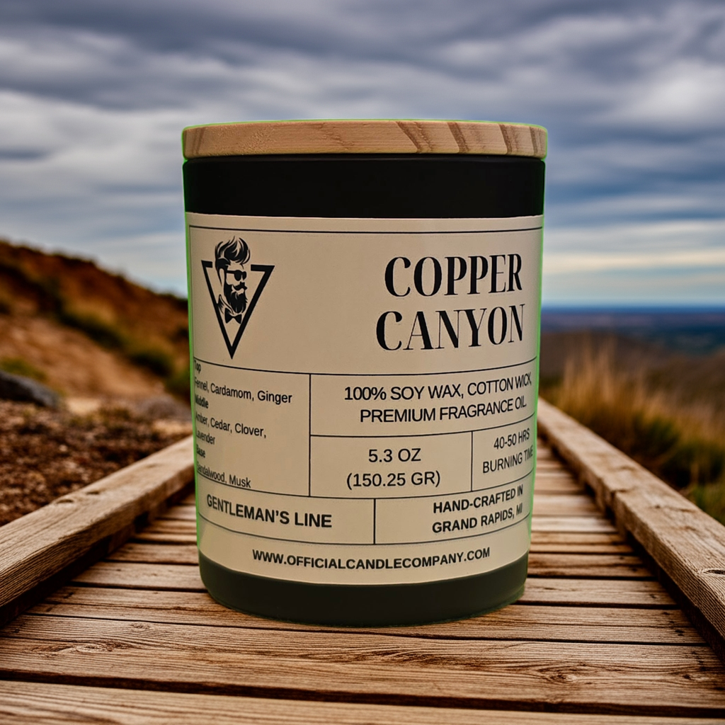 Spicy. Warm. Commanding. Copper Canyon opens with a fiery burst of fennel, cardamom, and ginger—bold spices that spark the senses like a desert wind at dusk. The heart blends rich amber, sturdy cedar, fresh clover, and calming lavender, balancing rugged strength with refined depth. The base settles into smooth sandalwood and warm musk, leaving a lasting trail that’s earthy, masculine, and unforgettable. For the man who walks strong paths and leaves a legacy in his wake.