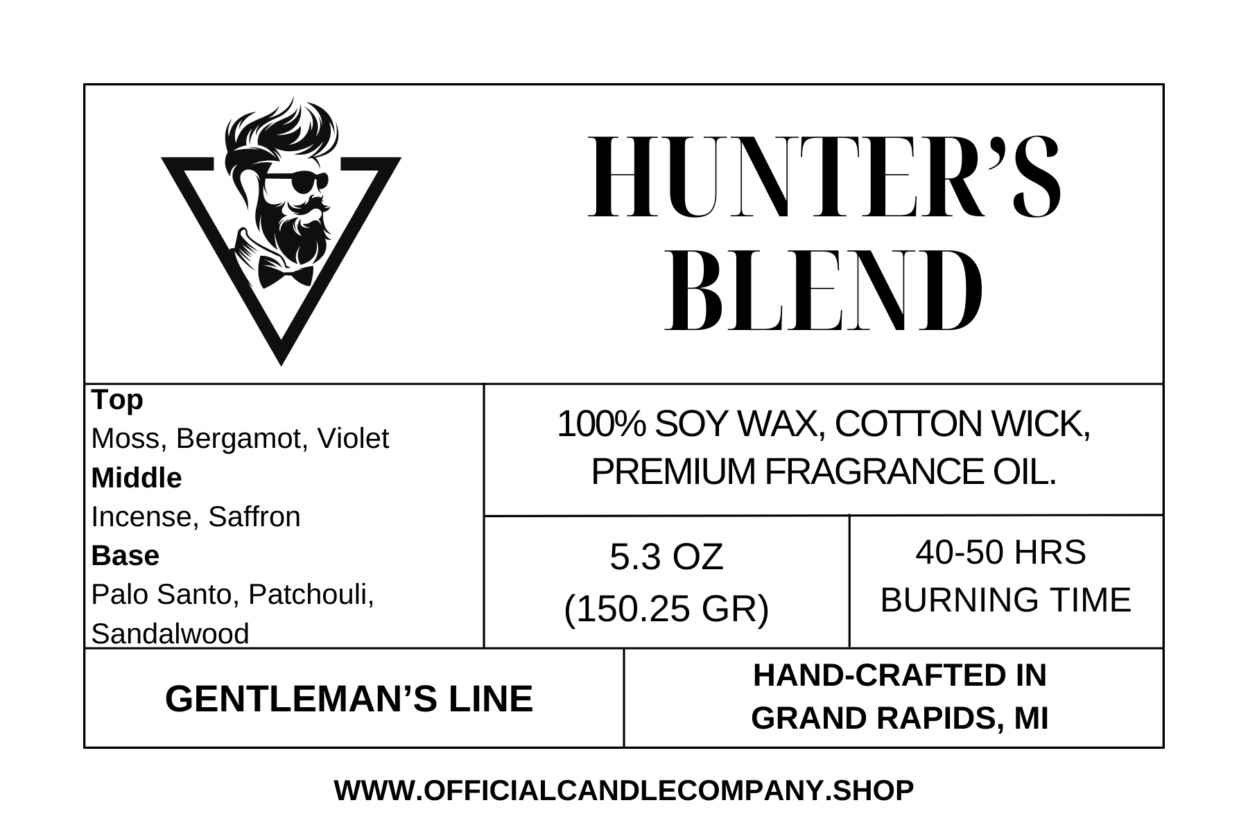 Step into the wild with Hunter’s Blend — a bold, masculine scent forged from earth and fire. It opens with rugged moss, sharp bergamot, and violet for a fresh but shadowed edge. Smoky incense and fiery saffron burn through the middle, grounding into a powerful base of Palo Santo, patchouli, and sandalwood. This candle leaves a deep, lasting trail of smoke, wood, and grit — made for those who lead the hunt, not follow the trail.