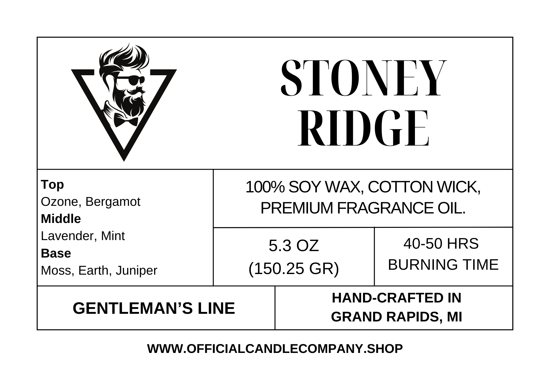 The Stoney Ridge Candle brings the rugged beauty of nature indoors. Inspired by rocky landscapes and the fresh, earthy air of mountain ridges, this candle combines the rich scent of cedarwood, moss, and crisp alpine winds. Its deep, grounding aroma evokes the serene calm of a mountain escape, perfect for those who seek tranquility and the wild spirit of the outdoors. Whether you’re relaxing after a long day or setting a peaceful ambiance, the Stoney Ridge Candle is a journey to nature's untouched peaks in every burn.